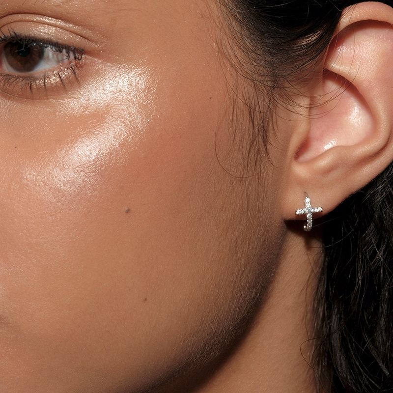 Boucle D'oreille Croix Femme Pierres Zircon Et Argent